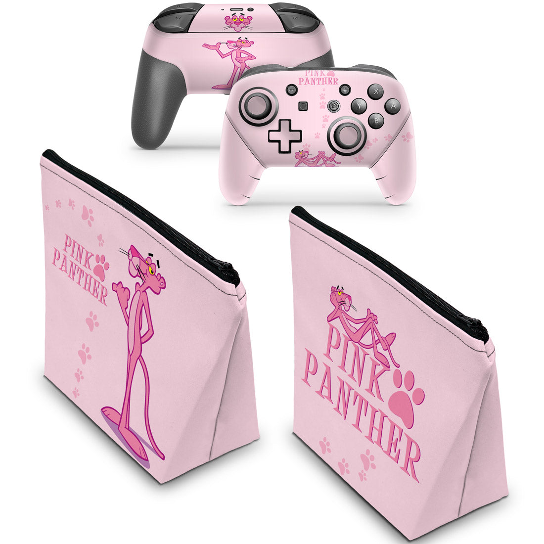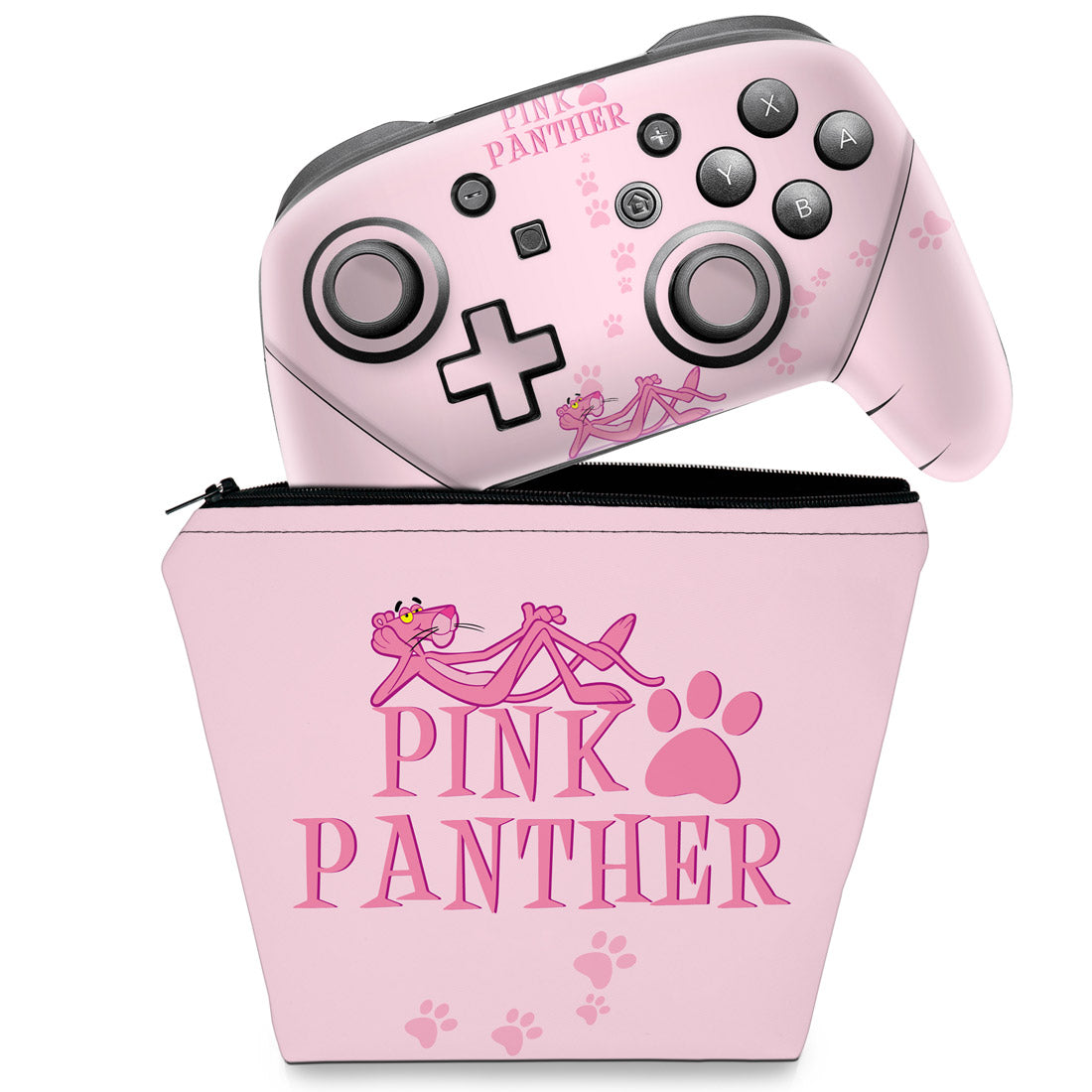 KIT Capa Case e Skin Anti-Rage Nintendo Switch Pro Controle - Pantera Cor de Rosa