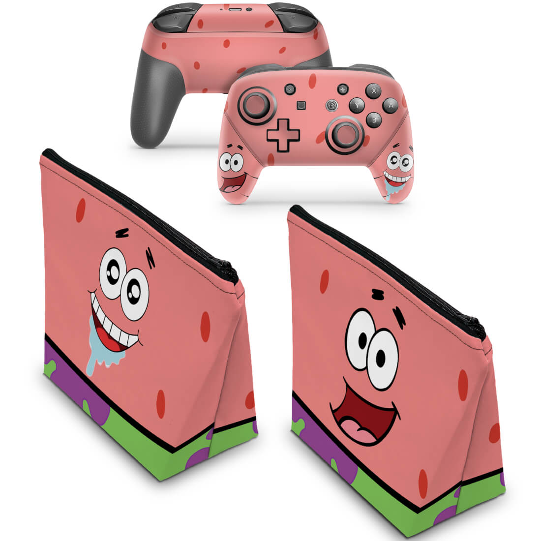 KIT Capa Case e Skin Nintendo Switch Pro Controle - Patrick Bob Esponja