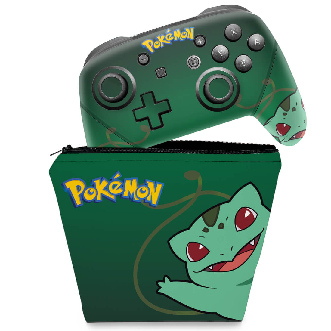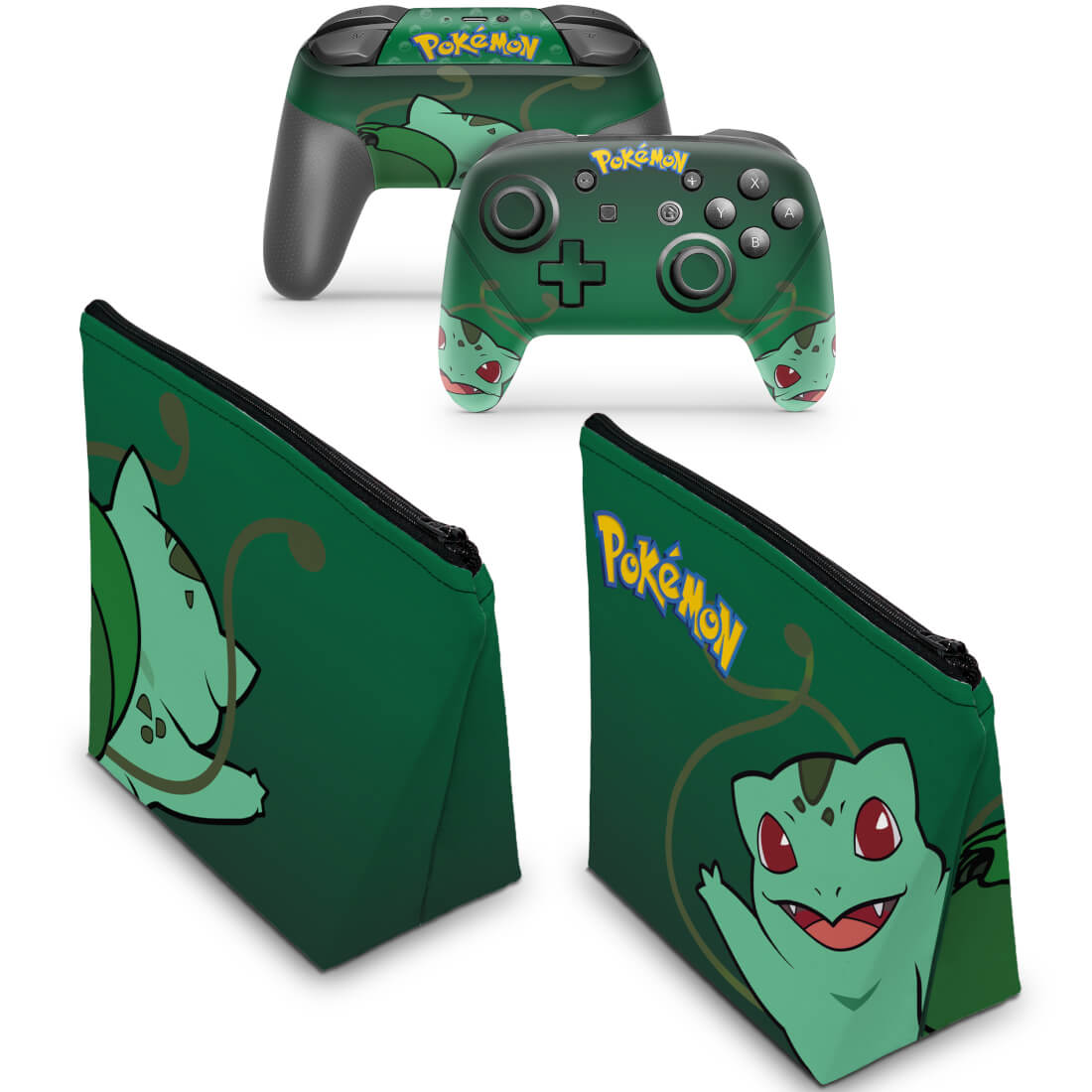 KIT Capa Case e Skin Nintendo Switch Pro Controle - Pokémon Bulbasaur