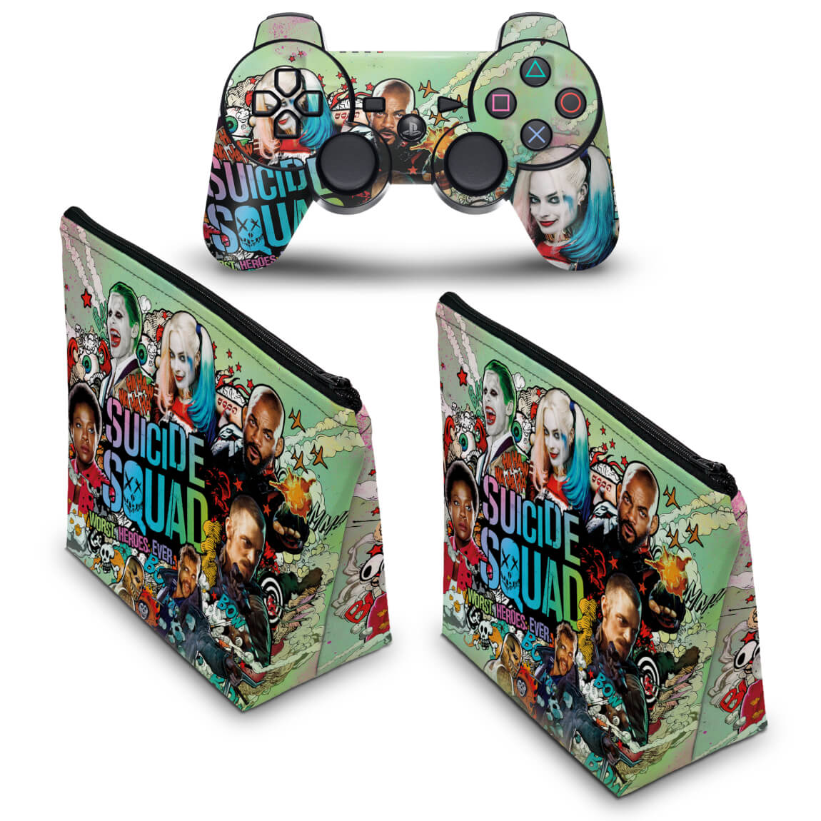 KIT Capa Case e Skin Anti-Rage PS3 Controle - Esquadrão Suicida