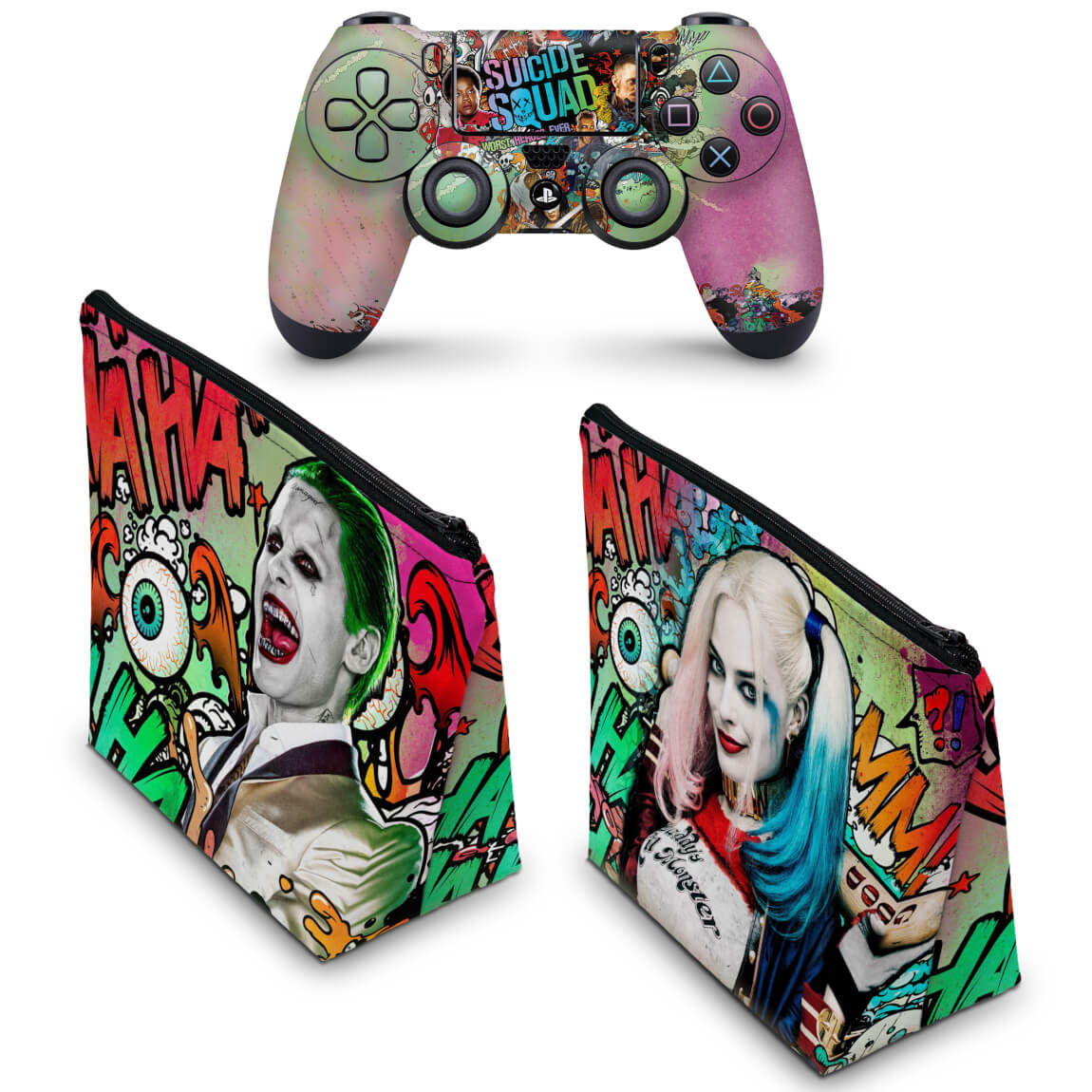 KIT Capa Case e Skin Anti-Rage PS4 Controle - Esquadrão Suicida #A