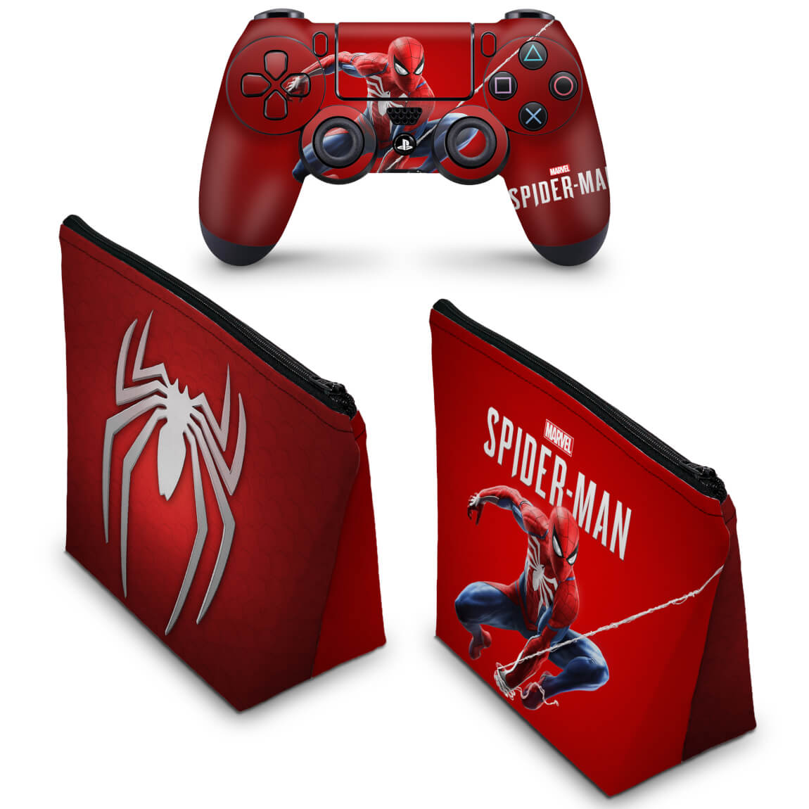 KIT Capa Case e Skin Anti-Rage PS4 Controle - Homem Aranha Spider-Man