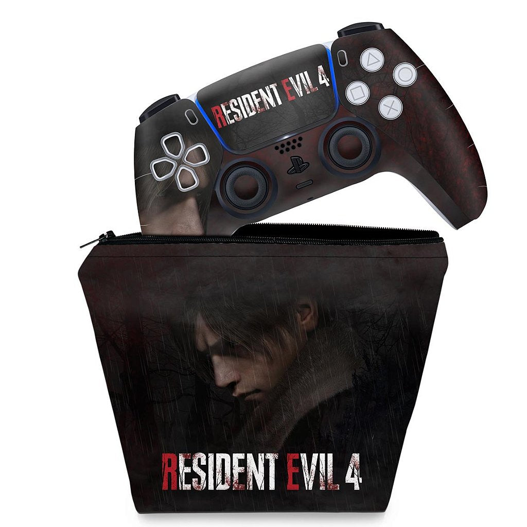 KIT Capa Case e Skin Anti-Rage PS5 Controle - Resident Evil 4 Remake