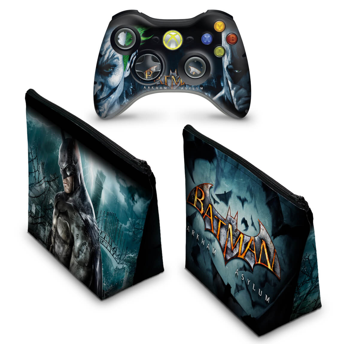 KIT Capa Case e Skin Anti-Rage Xbox 360 Controle - Batman Arkham Asylum