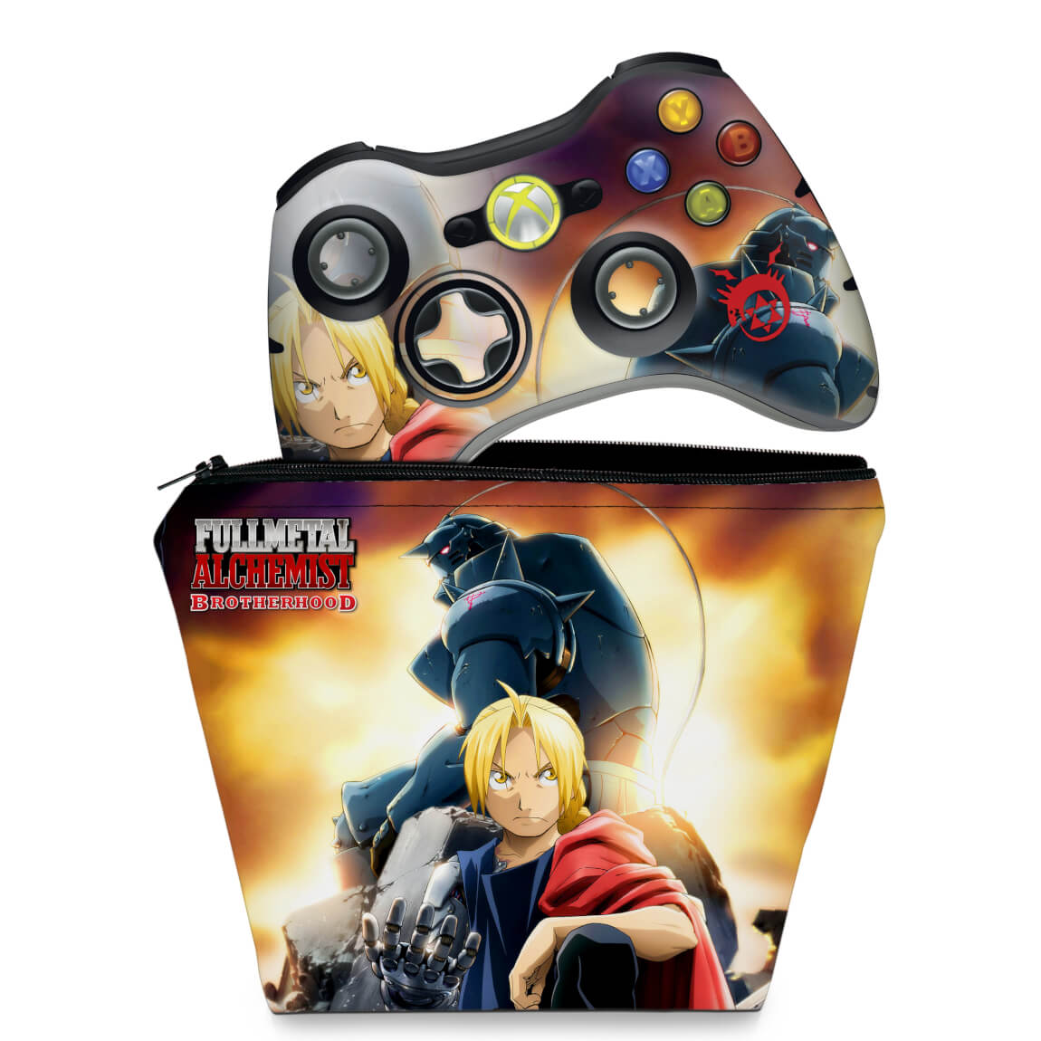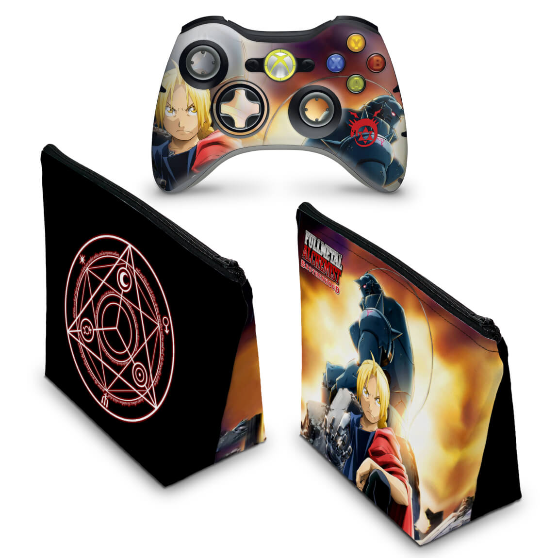 KIT Capa Case e Skin Anti-Rage Xbox 360 Controle - Fullmetal Alchemist
