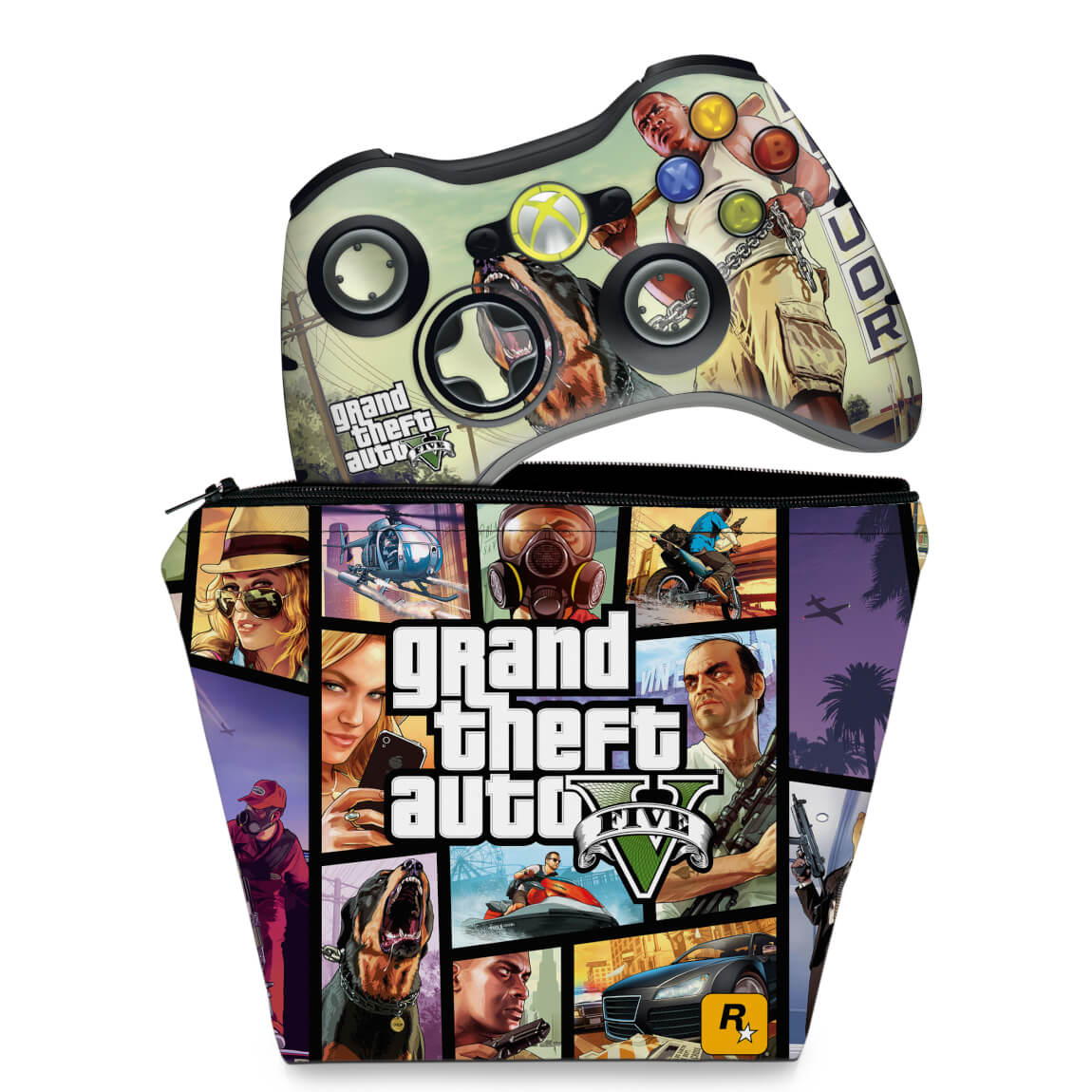 KIT Capa Case e Skin Anti-Rage Xbox 360 Controle - Gta V