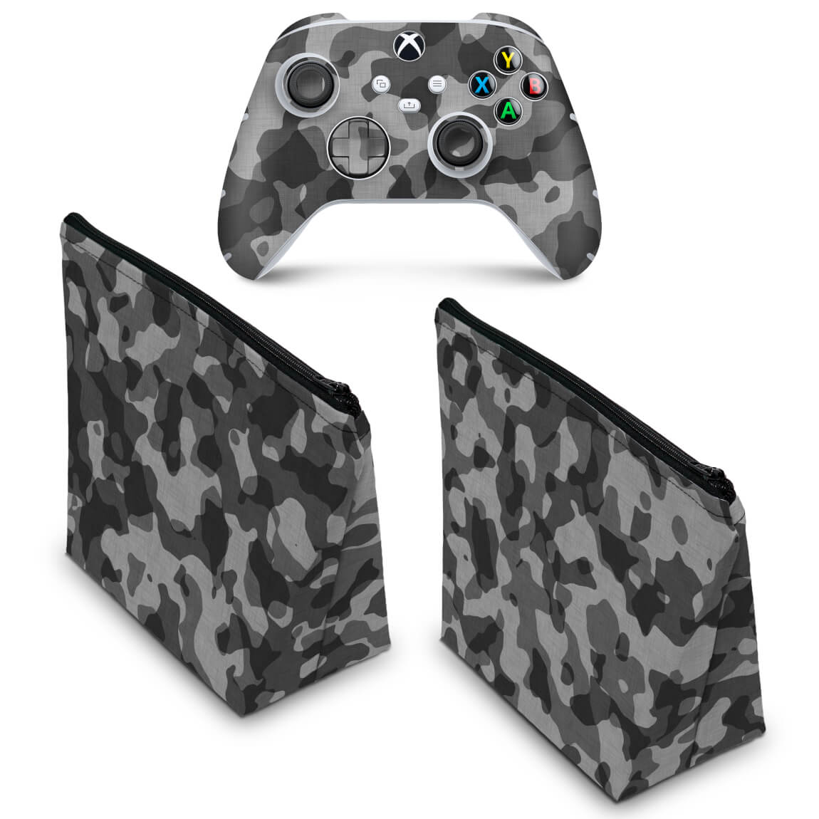 KIT Capa Case e Skin Anti-Rage Xbox Series S X Controle - Camuflado Cinza