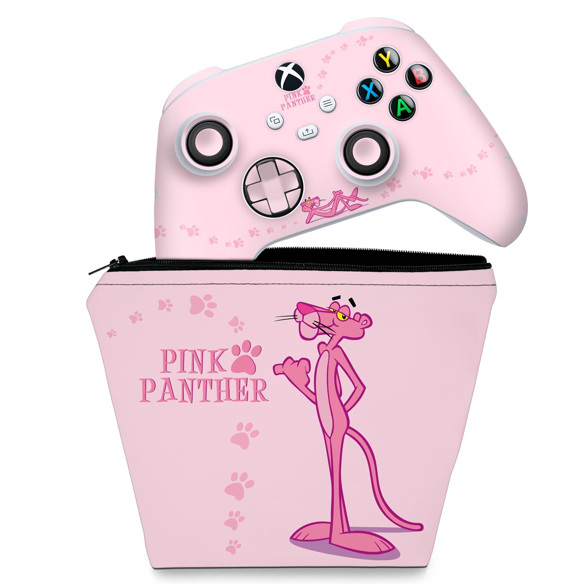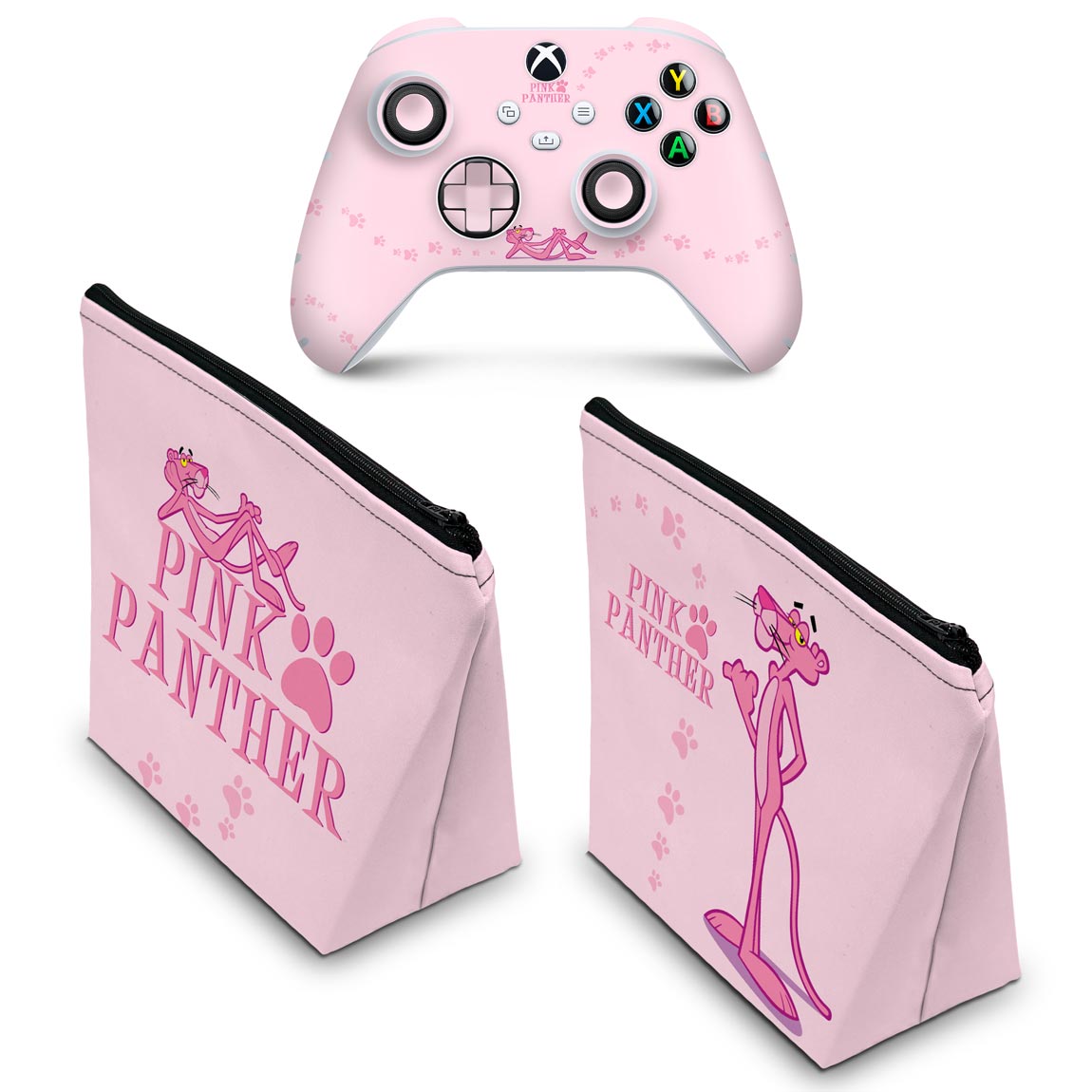 KIT Capa Case e Skin Anti-Rage Xbox Series S X Controle - Pantera Cor de Rosa