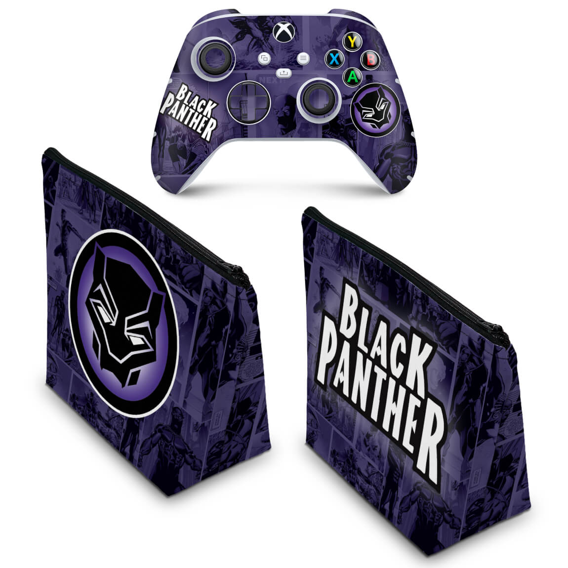 KIT Capa Case e Skin Anti-Rage Xbox Series S X Controle - Pantera Negra Comics