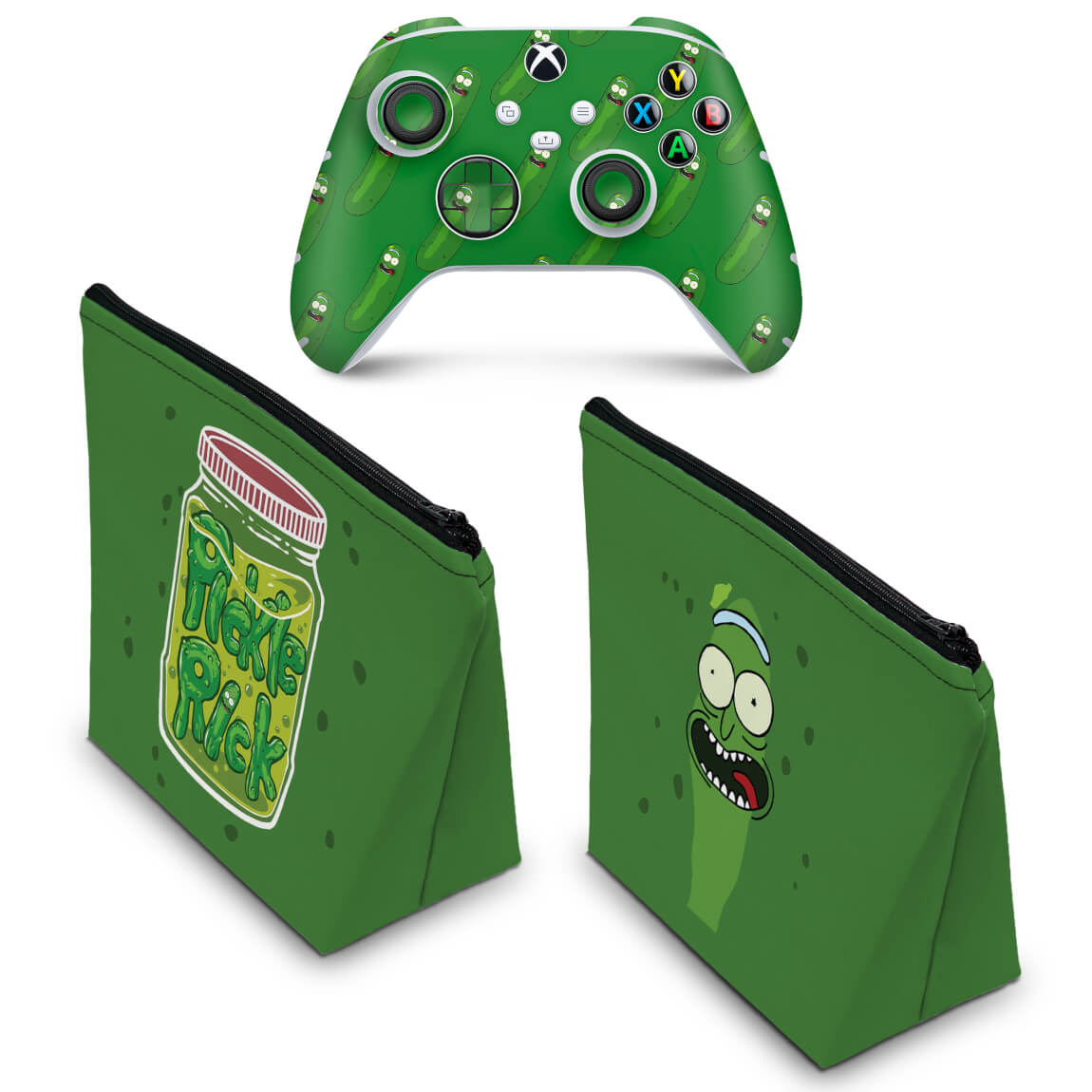 KIT Capa Case e Skin Anti-Rage Xbox Series S X Controle - Pickle Rick And Morty