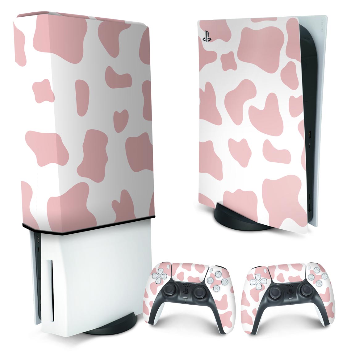 KIT Capa Anti Poeira e Skin Anti-Rage PS5 Fat Vertical - Vaquinha Rosa