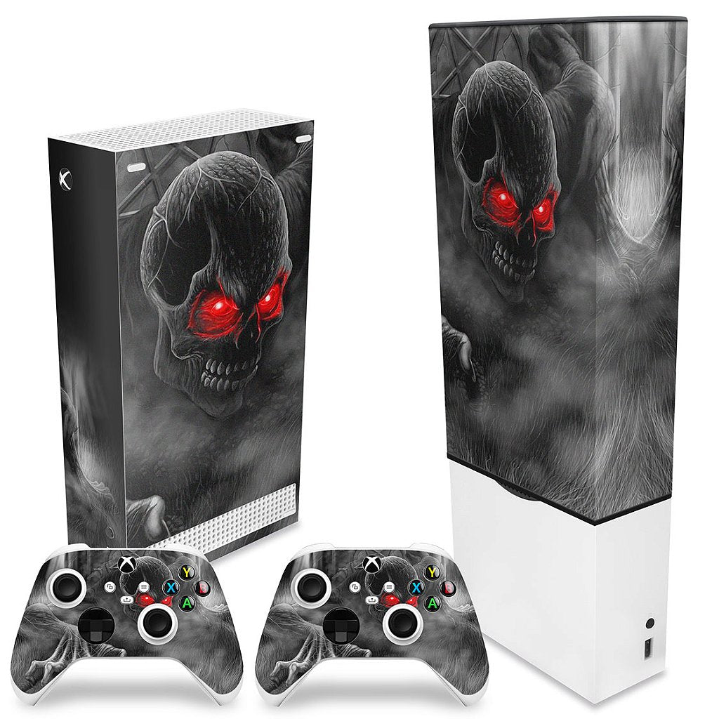 KIT Capa Anti Poeira e Skin Anti-Rage Xbox Series S Vertical - Caveira Skull