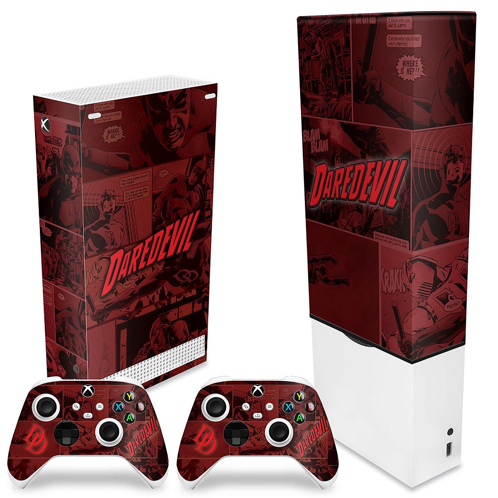 KIT Capa Anti Poeira e Skin Anti-Rage Xbox Series S Vertical - Daredevil Demolidor Comics
