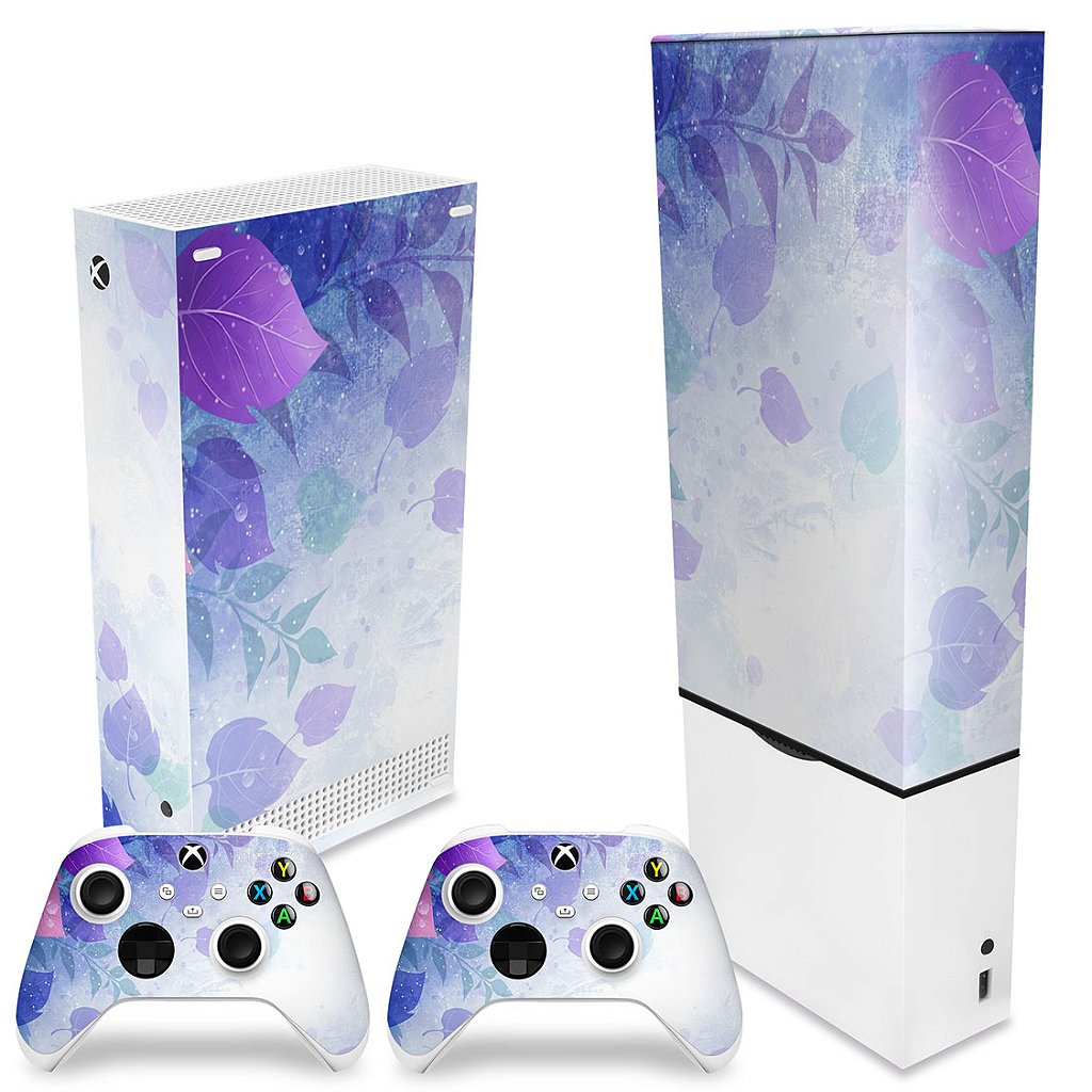 KIT Capa Anti Poeira e Skin Anti-Rage Xbox Series S Vertical - Folhas Lilás