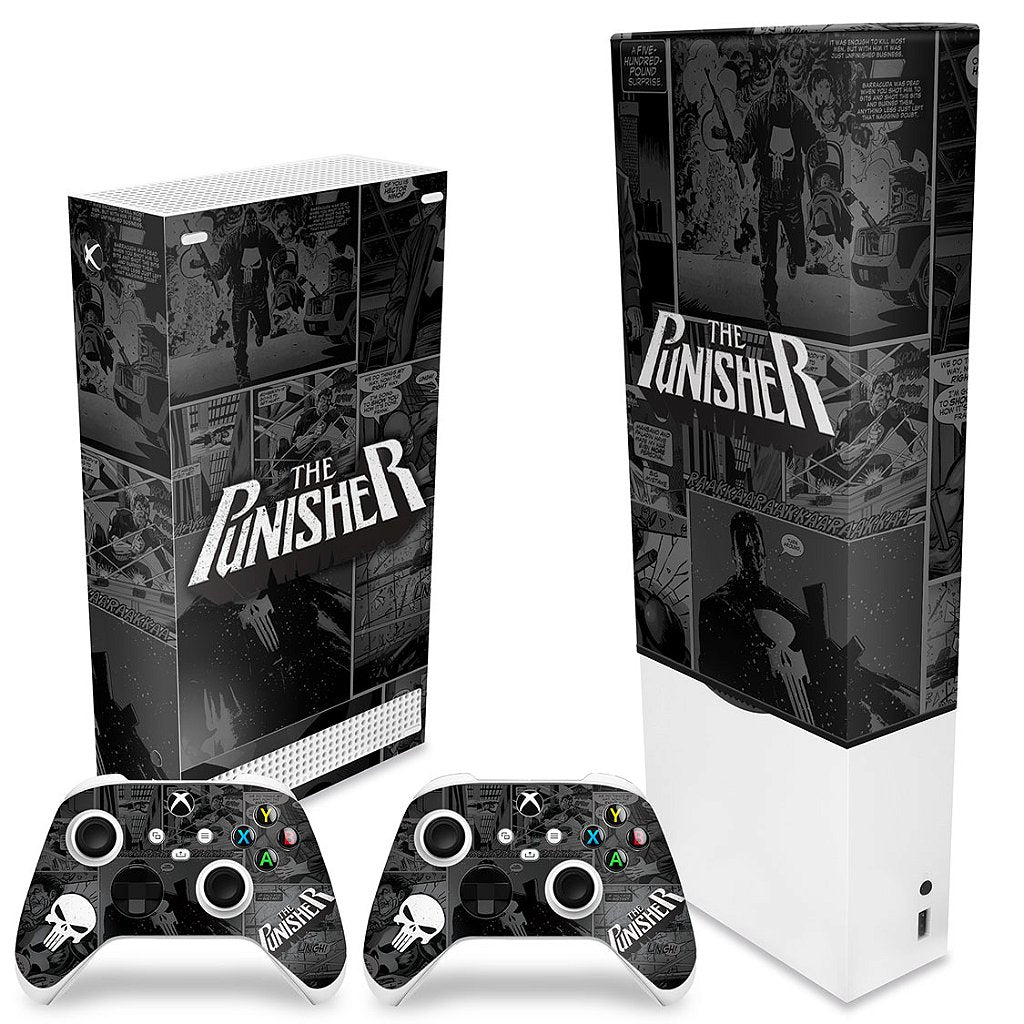 KIT Capa Anti Poeira e Skin Anti-Rage Xbox Series S Vertical - The Punisher Justiceiro Comics