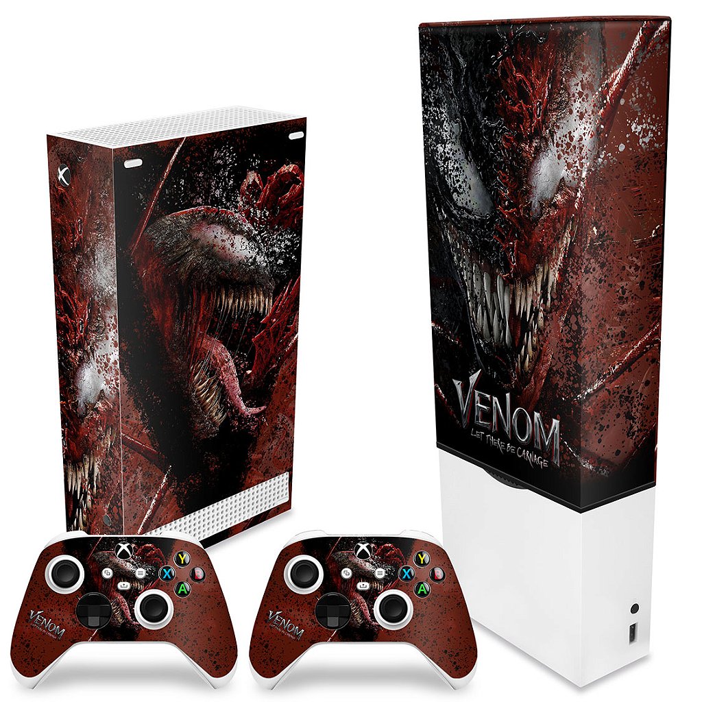 KIT Capa Anti Poeira e Skin Anti-Rage Xbox Series S Vertical - Venom Tempo de Carnificina
