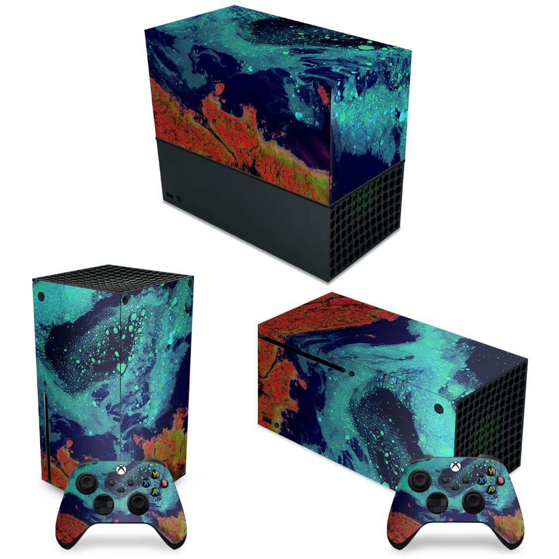 KIT Capa Anti Poeira e Skin Anti-Rage Xbox Series X Horizontal - Abstrato #105