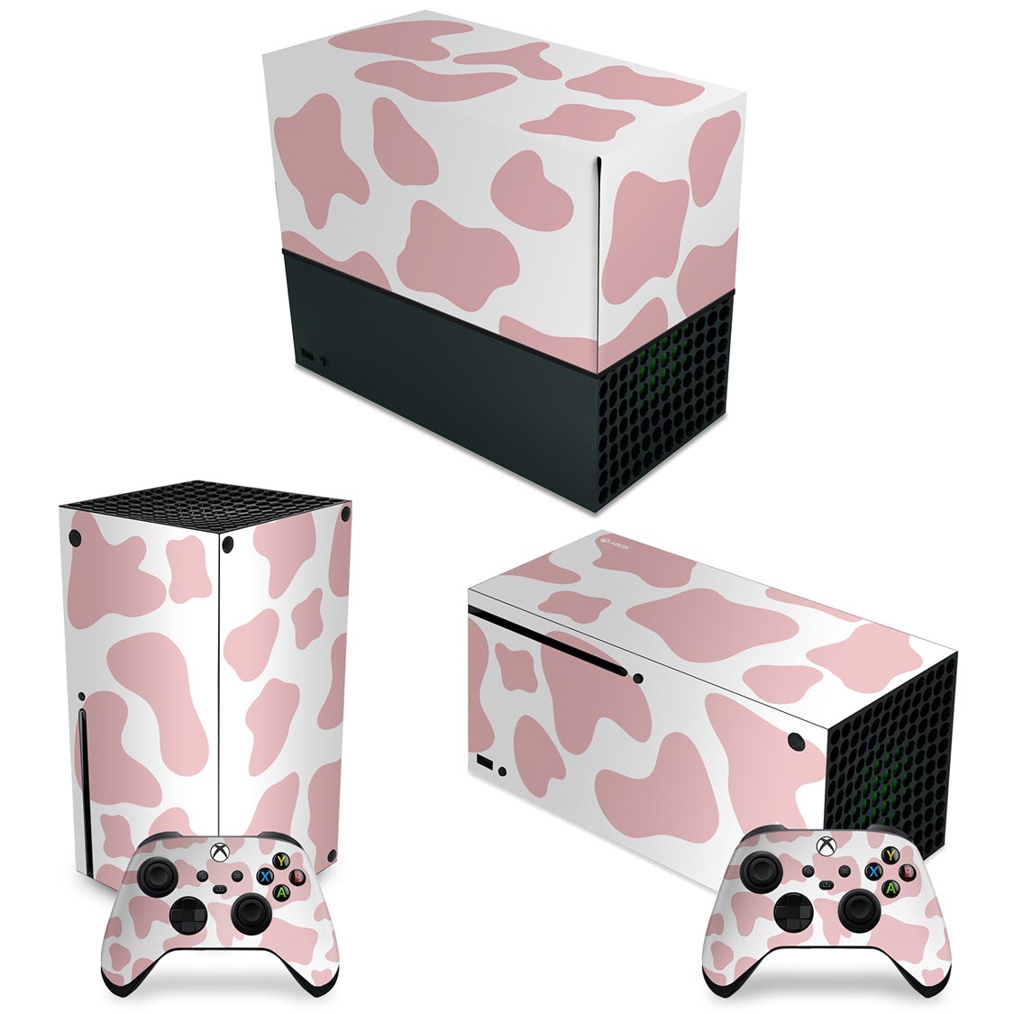 KIT Capa Anti Poeira e Skin Anti-Rage Xbox Series X Horizontal - Vaquinha Rosa